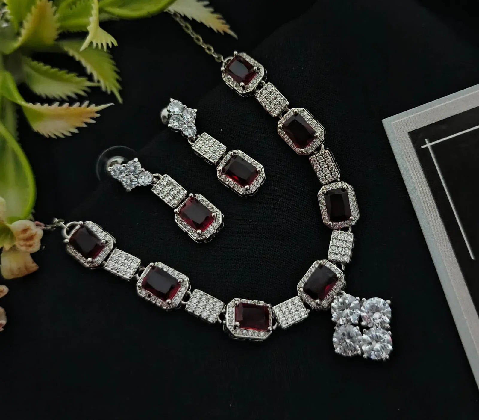 ❤️ Silver Ruby Fancy Zircone Set – A Touch of Royal Glamour